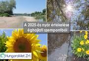 A 2025-ös nyár középhőmérséklete országos átlagban 1,2 fokkal meghaladta az 1991–2020-as éghajlati normált, amivel a hetedik legmelegebb 1901 óta. Több hőhullám is kialakult a nyáron, júliusban a mért legmagasabb hőmérséklet meghaladta a 40 fokot is. Csapadék tekintetében az évszak összességében nagyon száraz volt, noha előfordult lokálisan sok csapadék, heves események kíséretében. A legszárazabb júniust követően a júliusi és augusztusi csapadékmennyiség is elmaradt a szokásostól, ami a nyolcadik legszárazabb nyarat eredményezte a XX. század kezdetétől.